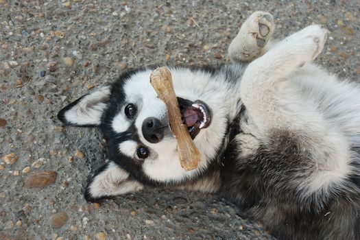 The four-month-old dog has no interest whatsoever in leaving the house and going for a walk with his owner. In fact, he’s so uninterested in the prospect of walkies that he happily lets his owner Andrew drag him around the floor while he remains completely motionless.