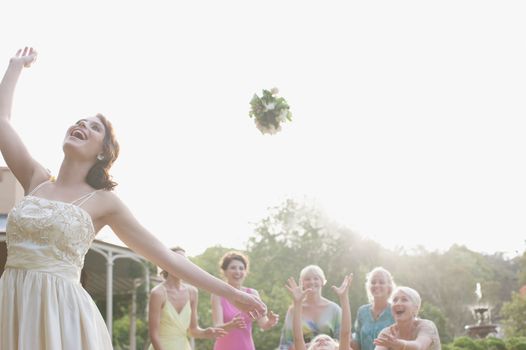 Throwing the bouquet is a well-known tradition at weddings.