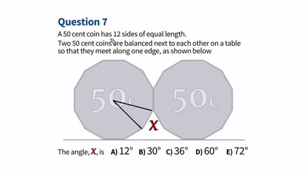 The multiple choice question asked Year 12 VCE students to decide on the degree of the angle between the two coins, as can be seen in the above image.