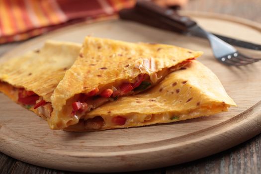 - Place the other toasted wrap on top and remove the quesadilla from the pan.
