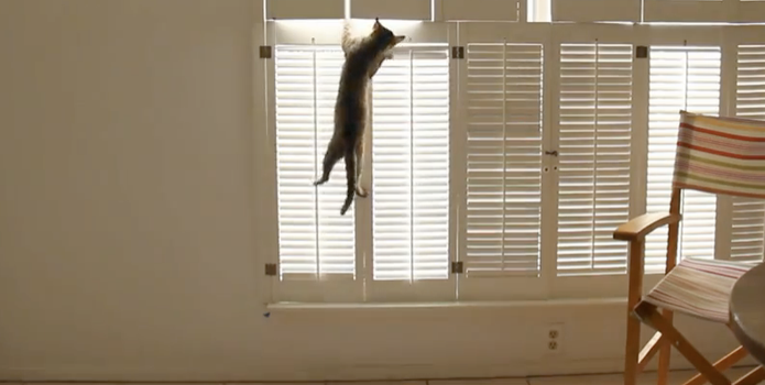 I see your dog, and I raise you... ninja cat. This feline has some serious skills!