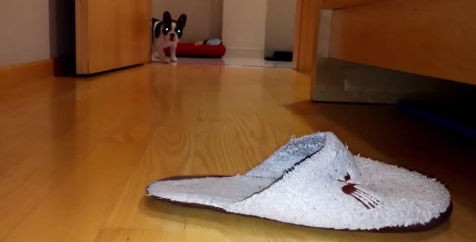 Pixel the French bulldog puppy loves nothing more than to make off with his owner’s slippers and the result is pretty hilarious.
