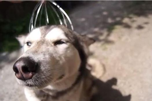 At first this husky isn’t too sure about getting a head massage but once his owner starts, it looks like his pooch never wants it to stop.