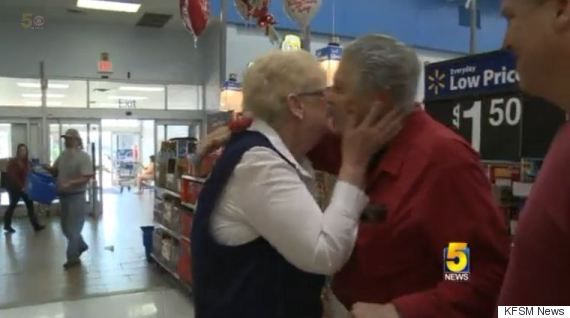 Louis decided to propose for second time and popped the question on Valentine’s Day by surprising Renate while she was working at Walmart, carrying a sign saying ‘Happy Valentine’s Day! Will you marry me?’.