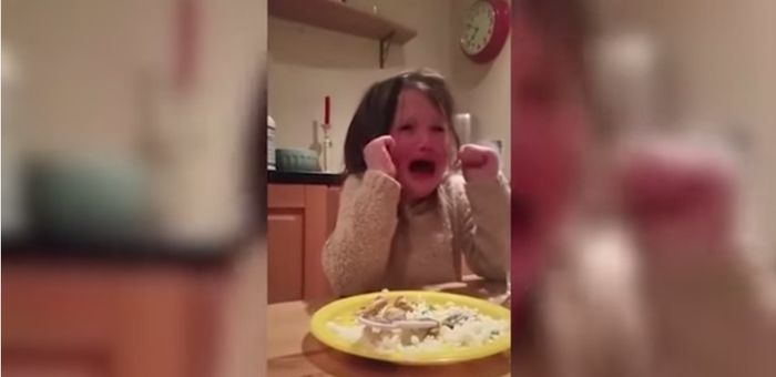 The six-year-old became upset at the dinner table when her father explained that meat comes from animals.