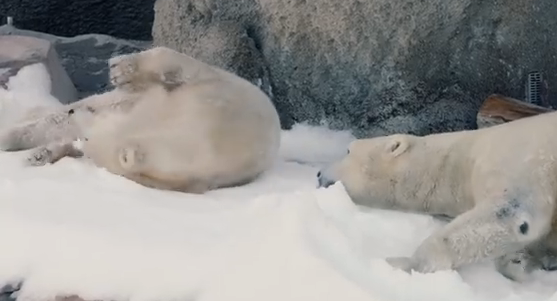 Polar bears at San Diego Zoo had the time of their lives at the weekend when 26 tonnes of cold snow was poured into their exhibit.