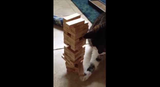 We’ve no idea how this cat learned how to play Jenga so well, or where he learned his technique, but one thing’s for certain, he knows what he’s doing.