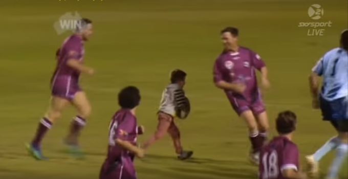 The sides were facing each other in a legends State of Origin charity display, when the boy made his way to up to the New South Wales back line.