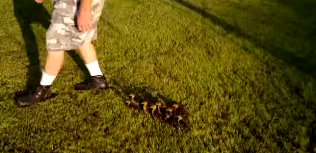 This man’s attempt to save 13 duck eggs after a mother duck was killed has left him with the ultimate fan-base – a 13 strong duckling entourage.