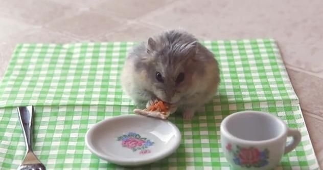 YouTube user April’s Animals has created this adorable video of a tiny hamster nibbling away on the smallest slice of pizza in the world.