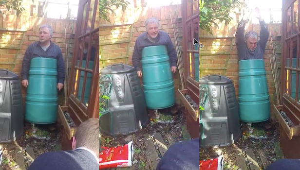 A dad gets stuck in a compost bin, what do his family do? They film it of course!