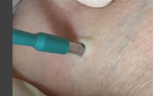 Dr.Pimple Popper decided to upload a weekend treat, posting a video of her using a tool to make a dent before she can pull up the fluid from a cyst in the right armpit of her patient.