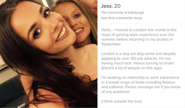 One London graduate was forced to steer her fate in a different direction and has taken to Tinder to bag her dream job.