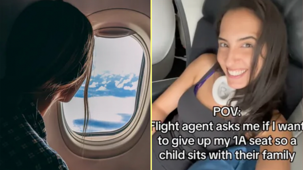 “POV: Flight agent asks me if I want to give up my 1A seat so a child sits with their family,” she explained via the in-video caption.
