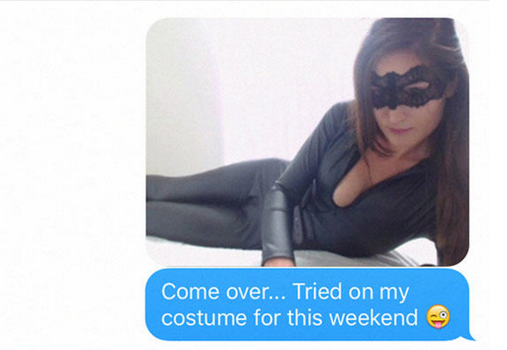 The saucy so-and-so, who remains anonymous, tried her skintight leather Catwoman costume on ahead of Halloween and decided to send her fella a snap to make the most of the sexy situation.