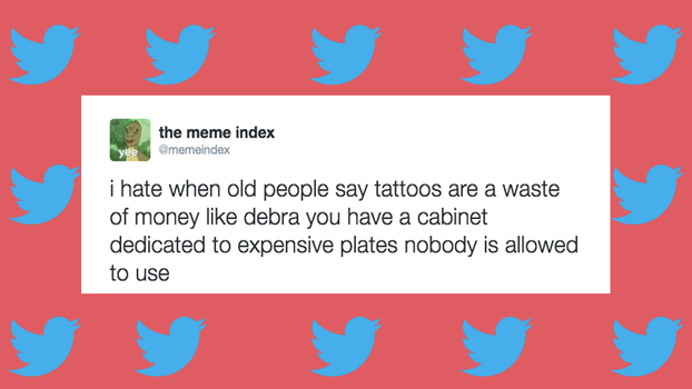 i hate when old people say tattoos are a waste of money like debra you have a cabinet dedicated to expensive plates nobody is allowed to use