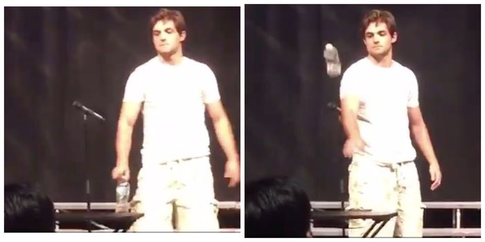 Earlier this week, Mike took part in his school’s talent competition, where he showed off his knack for flipping a water bottle and having it land perfectly upright. A classmate of his named Wes filmed it and put it out on Twitter, where it has had over 46,000 RTs and 60,000 likes.