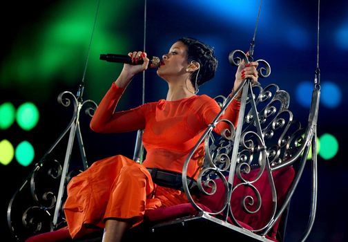 Rihanna performing at the London 2012 Paralympics Closing Ceremony.