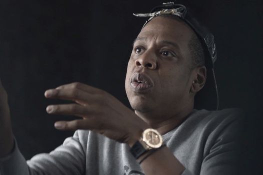 Jay-Z is currently lip-synching one of the tracks from his new album Magna Carta in New York’s Pace Gallery and will be doing so for the next few hours.