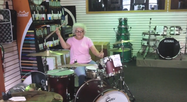 A Wisconsin music shop were in awe at this “Grandma Drummer” came into their shop and showed them her moves.