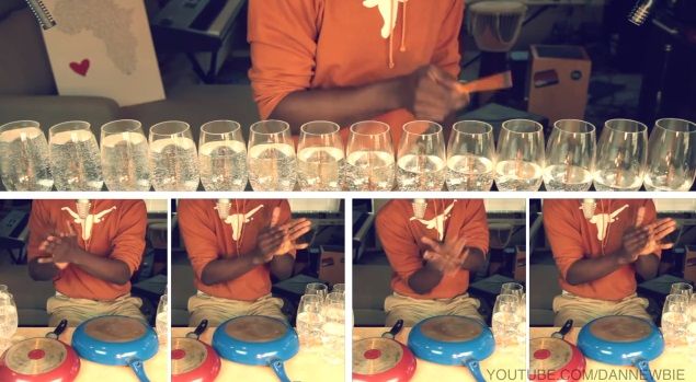 Using just rows of wine glasses filled at various levels and pans, Dan Newbie has come up with a very cute cover of the chart-topping hit, giving it a more celestial feel.
