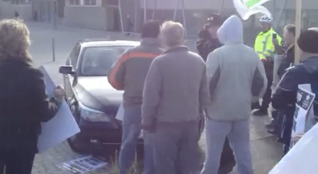 Show them how you really feel... Some frustrated protesters captured on camera attacking a car carrying Tainiste Eamon Gilmore and Minister for Children Frances Fitzgerald at an event in Ballyfermot earlier this morning.