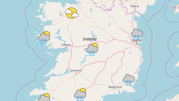 The weather forecaster said: “This morning will be cloudy with rain in most areas. West Connacht and west Ulster will stay mainly dry. This afternoon, in the east, some heavy bursts of rain will occur.