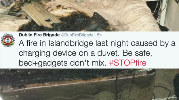 Dublin Fire Brigade used this as an opportunity to warn people of the dangers of leaving their electronics lying on the bed in their homes.