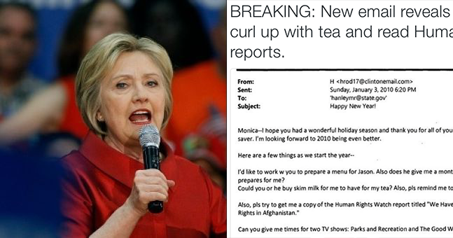 In the email Clinton asks a woman named Monica for skim milk for tea and requests the airing times for Parks and Recreation and The Good Wife.
