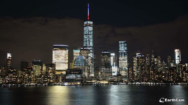 One World Trade Center spire lit in blue, white & red in solidarity with France https://t.co/sW976m6tQU #paris pic.twitter.com/mMxI26z61Q