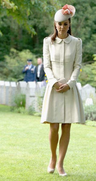 MONS, BELGIUM – AUGUST 04: Catherine, Duchess of Cambridge looks at war graves at St Symphorien Military Cemetery on August 4, 2014 in Mons, Belgium. Monday 4th August marks the 100th Anniversary of Great Britain declaring war on Germany. In 1914 British Prime Minister Herbert Asquith announced at 11pm that Britain was to enter the war after Germany had violated Belgium’s neutrality. The First World War or the Great War lasted until 11 November 1918 and is recognised as one of the deadliest historical conflicts with millions of casualties. A series of events commemorating the 100th Anniversary are taking place throughout the day. (Photo by Chris Jackson/Getty Images)