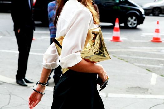 This street style trendsetter is really rocking her metallic grey suit.