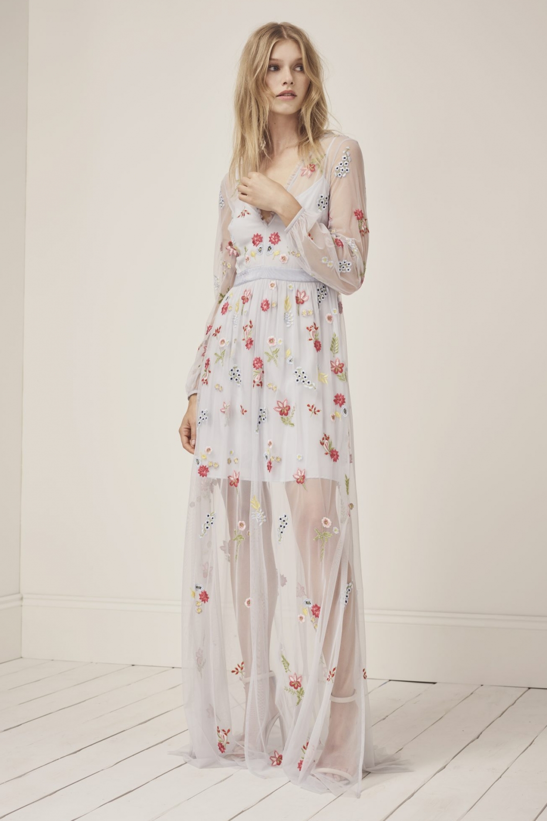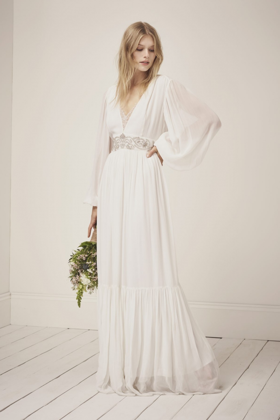 Going down the boho-bridal route, the collection is full of soft fabrics, lace, sheer material and flowers.