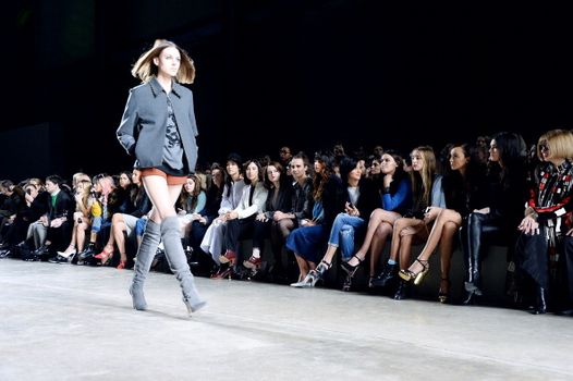 Faux sheepskin gilets, over the knee boots and voluminous overcoats made this Topshop show a lustworthy affair.