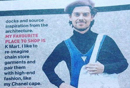 My favourite place to shop is K Mart. I like to re-imagine chain store garments and pair them with high end fashion, like my Chanel cape.