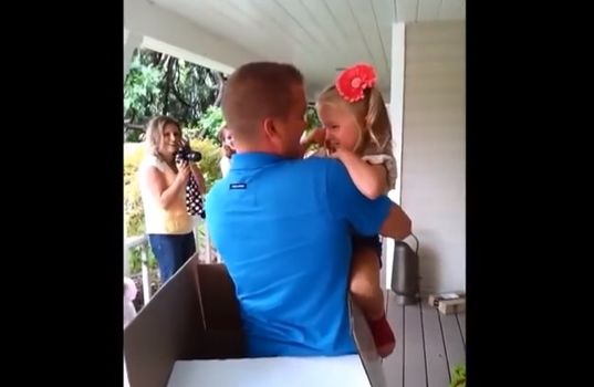 After returning from Afghanistan, this military dad decided to hide in a present for his three-year-old daughter.