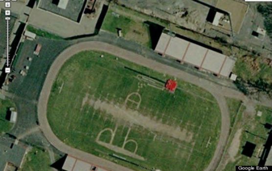 The prank was carried out on the turf at Bedford Senior High School in Temperance, Michigan on August 30th.